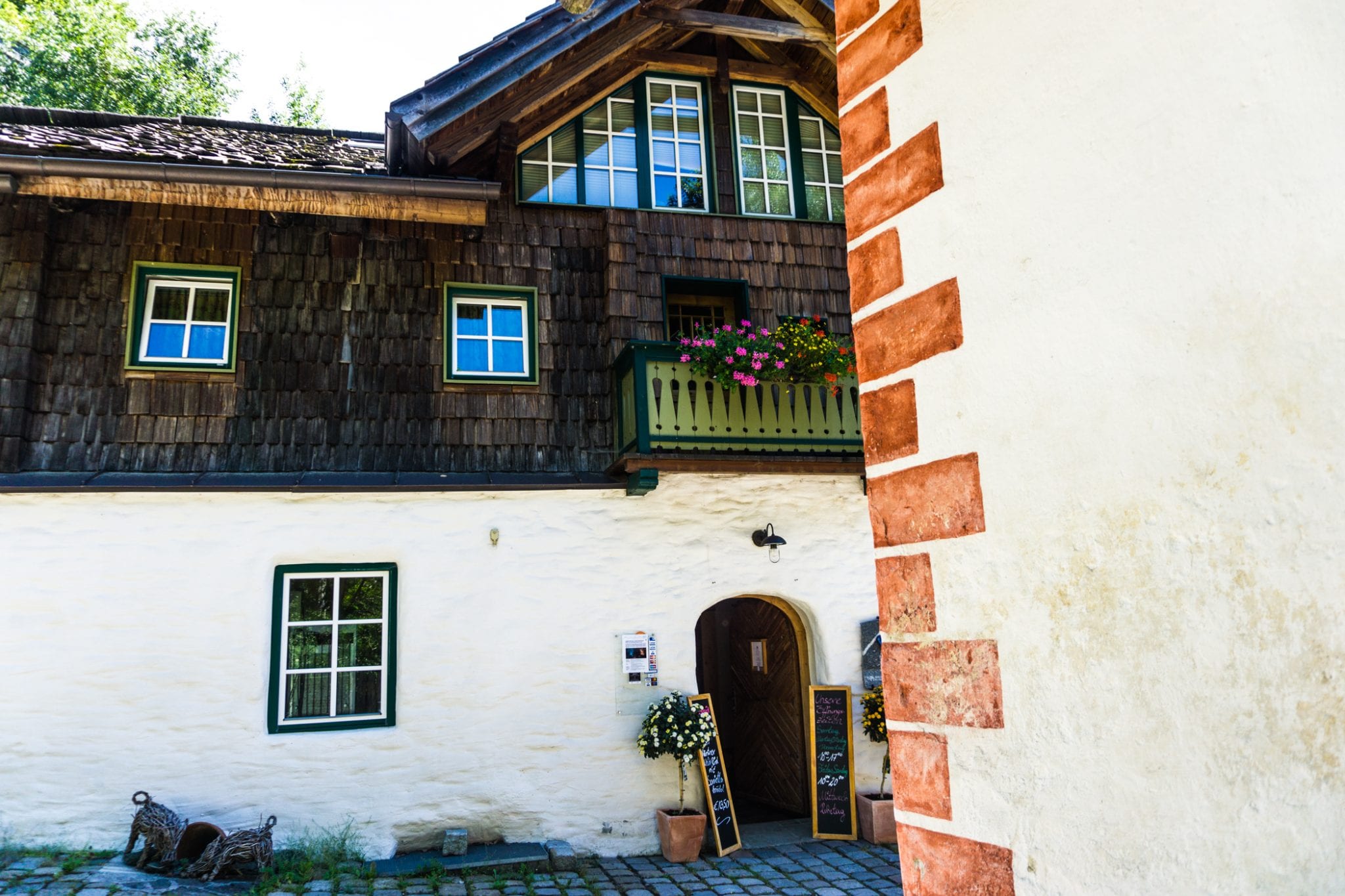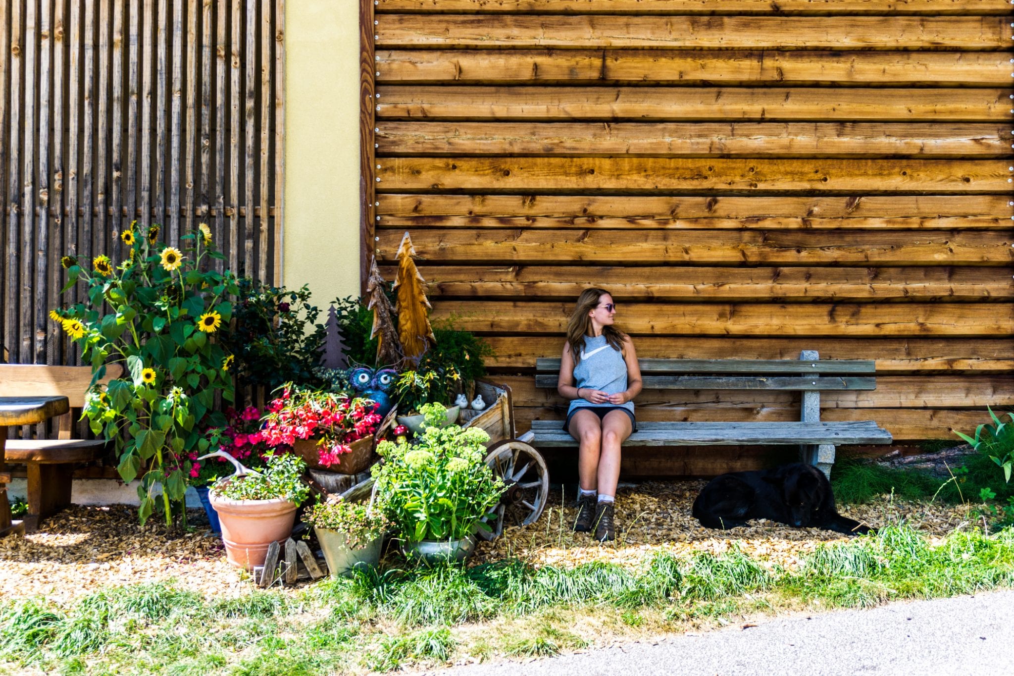 Alpe Adria Trail ST07 is een wat langere trail in vergelijking met de kilometers van de eerdere Alpe Adria Trails die we liepen. Zeker met de extra meters vanaf het treinstation. Gelukkig is er onderweg een opvallend grote keuze aan bankjes om je voeten even te rusten te leggen. Zoek je een leuk lunchplekje, dan raden we aan om toch even te wachten tot je in een schlucht bent. Óf je maakt een tussenstop bij ‘Zur guten Quelle’. Dit verstopte restaurantje vind je tussen de twee schluchten in. Het eten is er top en met lekker weer is het terras in de tuin een waar paradijsje.