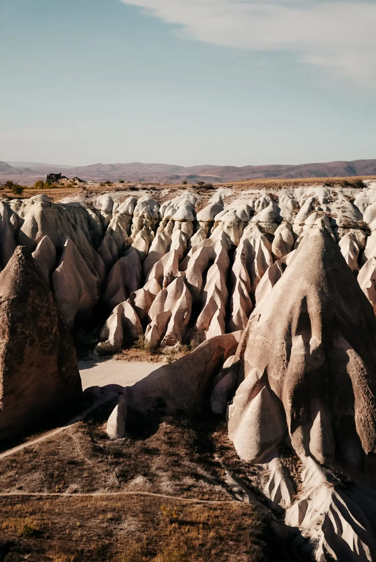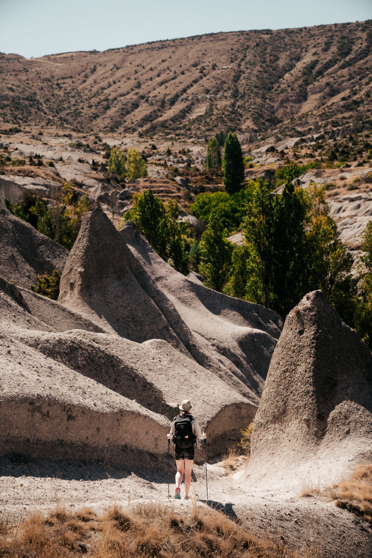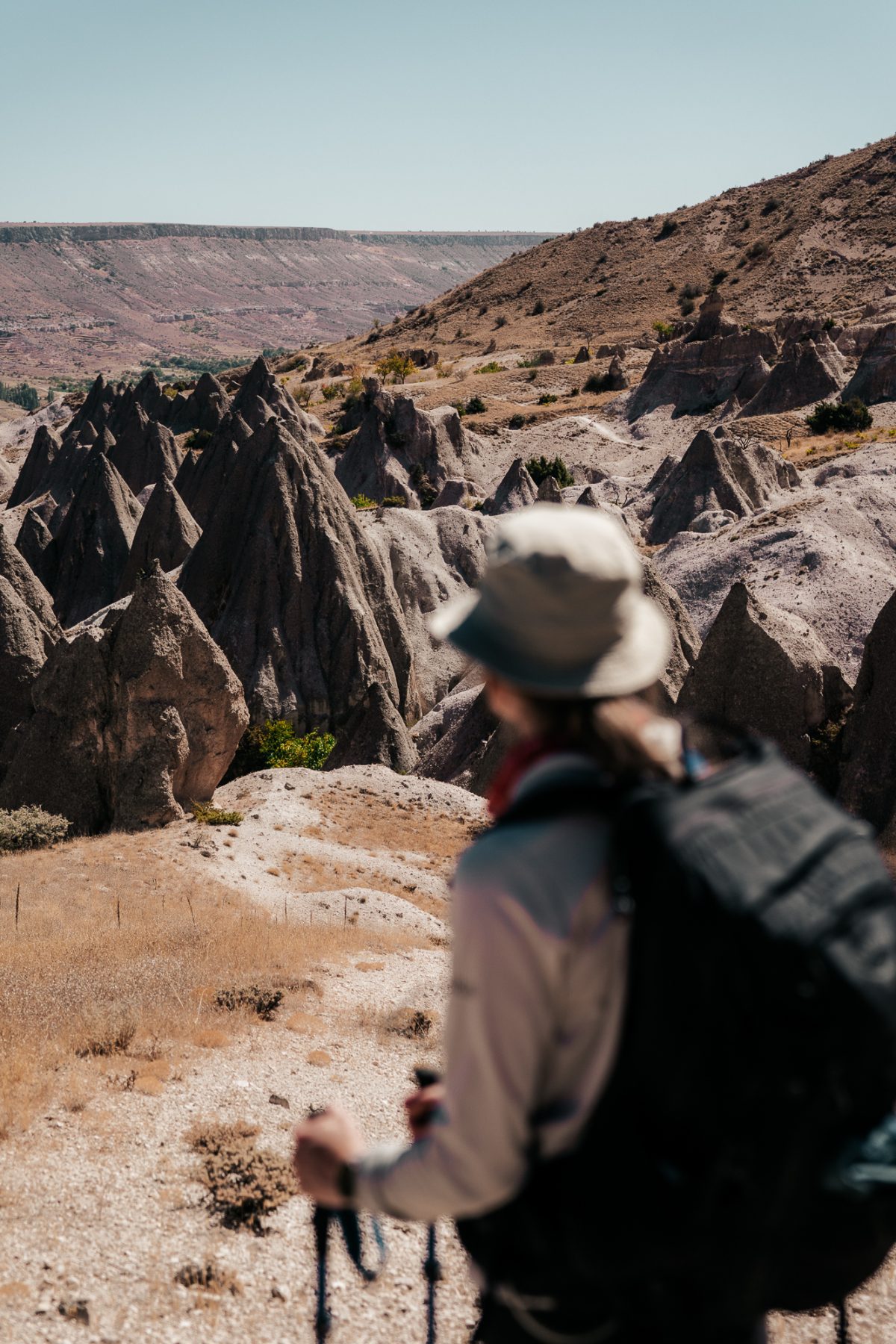 Zodra we Taskinpasa achter ons laten, lopen we door lege, uitgestrekte valleien, waardoor het lijkt alsof we de enige wandelaars op aarde zijn. De uitzichten zijn spectaculair en doen soms denken aan een maanlandschap. We lopen door enorme pompoen- en quinoavelden. Al snel zien we de beroemde schoorstenen, rotsformaties van zacht tufsteen bedekt met een hardere basaltlaag, die Cappadocië zo uniek maken.