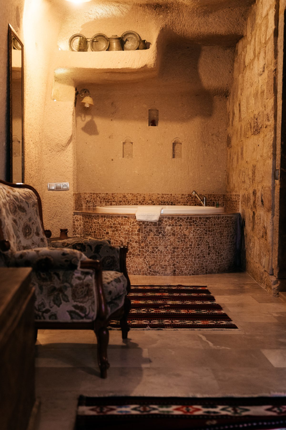 De hotels onderweg zijn stuk voor stuk fijn en sfeervol ingericht. Ik heb echt heerlijk geslapen. Ook hebben alle kamers airconditioning, wat na een warme wandeldag ontzettend fijn is. Met een beetje geluk heb je zelfs een badkamer die aanvoelt als een kleine hammam, compleet met bad of jacuzzi. Persoonlijk heb ik liever in alle hotels gewoon een douche, maar dat is natuurlijk een kwestie van voorkeur. Shampoo en douchegel hoef je in ieder geval niet mee te nemen: die liggen overal al voor je klaar.