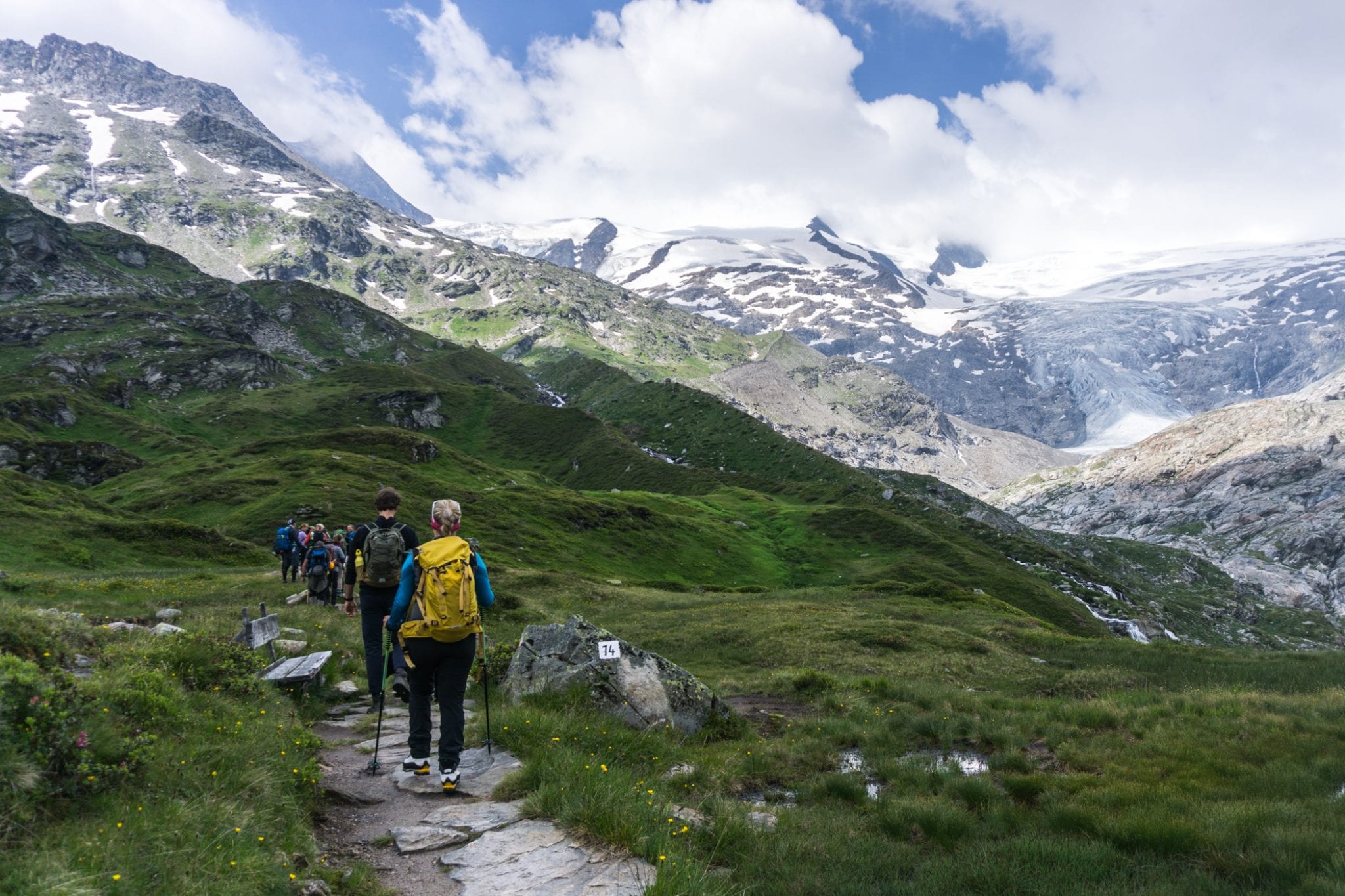 Na boven de waterval te zijn gekomen, steek je het water over en ga je richting de gletsjer. De gletsjer trekt door het veranderende klimaat elk jaar steeds meer terug. Volgend jaar moet je enkele meters verder lopen om bij de gletsjer te komen. Uiteindelijk zal de gletsjer helemaal verdwenen zijn, maar dat kan nog wel honderden jaren duren. Eenmaal de gletsjer bereikt kan je zien hoe compact het ijs en hoe koud het water is. Omdat het daar wat kouder is, daal je weer iets af om te gaan lunchen. Na de lunch breekt het laatste stuk van de Gletscherweg Innergschlöss aan. Je daalt redelijk snel en komt schapen en geiten tegen. Ondertussen heb je een geweldige view op de vallei. Uiteindelijk kom je weer voldaan aan bij het Vendigerhaus, waar je een heerlijk drankje kan nuttigen.