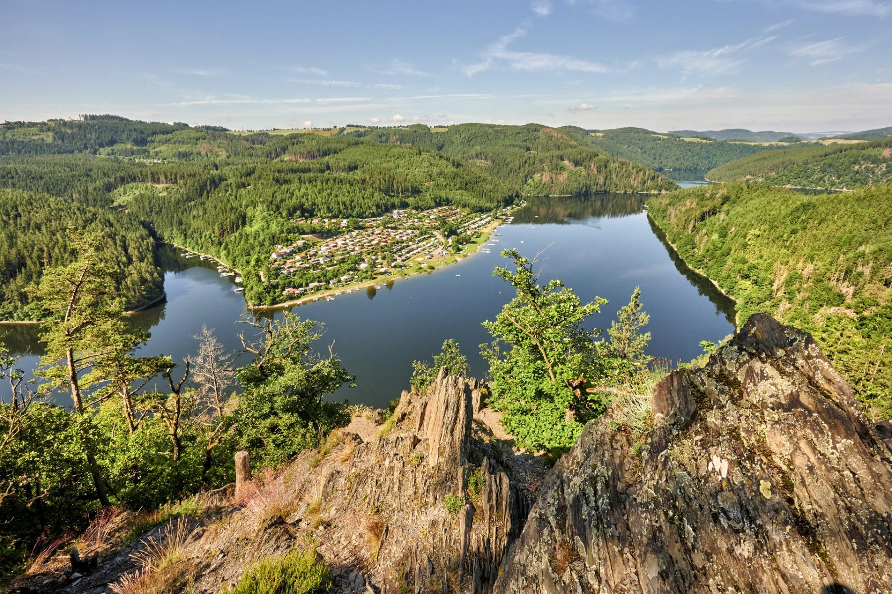 Dichte bossen, steile hellingen en daartussen een zee van blauw. Wie door het Naturpark Thüringer Schiefergebirge loopt waant zich af en toe in een Noors fjord. Niet voor niets noemende locals deze plek liefkozend het Thüringer Meer. Die naam heeft het dubbel en dwars verdient: hier vind je namelijk het grootste samenhangende stuwmeergebied van Europa, dat inderdaad wel wat weg heeft van een grote binnenzee.