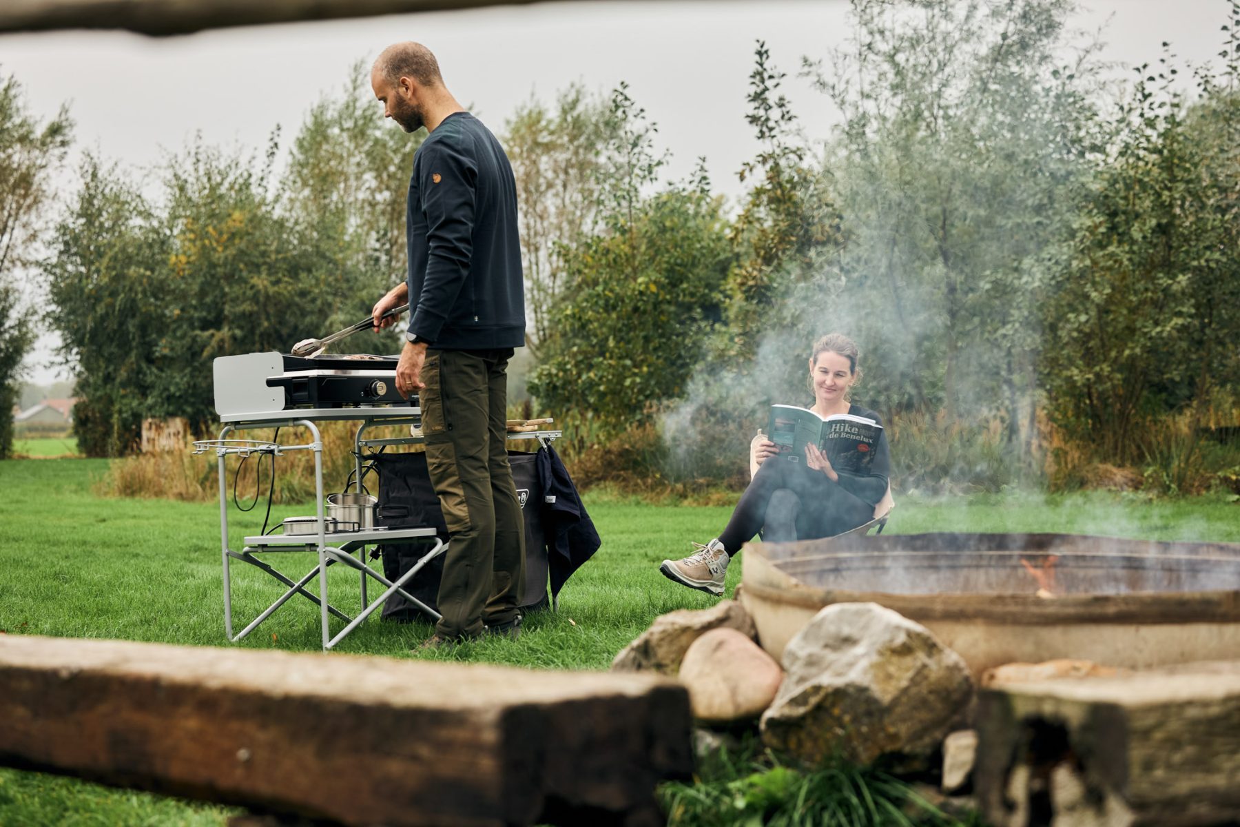 Naast wandelen is de Keb-collectie uitermate geschikt voor kamperen. Herfst- en winterkamperen vraagt om kleding die meebeweegt met het weer én met wat je doet. Tijdens het opzetten van de tent of het hakken van hout wil je ventilatie en bewegingsvrijheid, terwijl je bij het kampvuur juist warmte en bescherming nodig hebt. De Fjällräven Keb-collectie is daarop afgestemd. De broeken en jassen ademen goed bij inspanning, maar houden wind en vocht buiten wanneer je stilstaat. Dankzij de verstevigingen in G-1000 kunnen ze tegen ruw terrein en natte ondergrond en de laagjes combineren makkelijk met een fleece of shell. Zo blijf je comfortabel en droog, ook tijdens lange en koude dagen buiten.