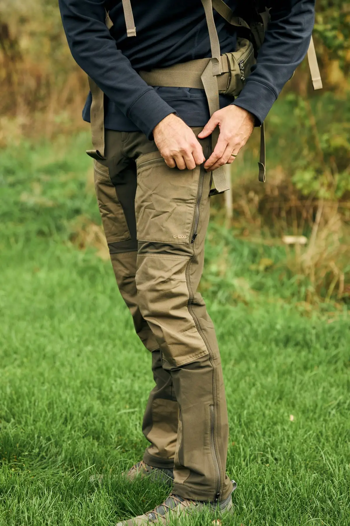 De broek biedt precies de balans die je zoekt tijdens herfstwandelingen: warm en winddicht, maar niet benauwend. De mix van gerecycled polyamide, polyester en elastaan zorgt voor stretch en bewegingsvrijheid, terwijl G-1000-verstevigingen de meest kwetsbare zones beschermen. De ventilatieritsen zijn goud waard tijdens de warmere momenten op de dag. Ga je echte natte omstandigheden tegemoet, dan kan je de broek uiteraard behandelen met de Greenland Wax.