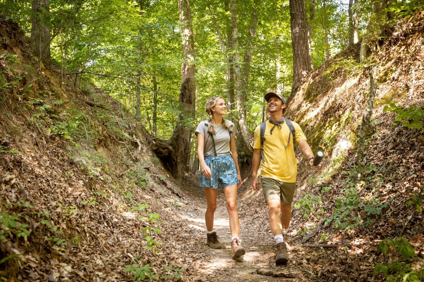 - King’s Chair Loop: In het hart van Oak Mountain State Park vind je de King’s Chair Loop. Het wordt gezien als een van de meest uitdagende hikes van Alabama, terwijl de trail maar ongeveer 7 kilometer is. In twee uur zie je een van de meest pittoreske uitzichten van de hele staat.
