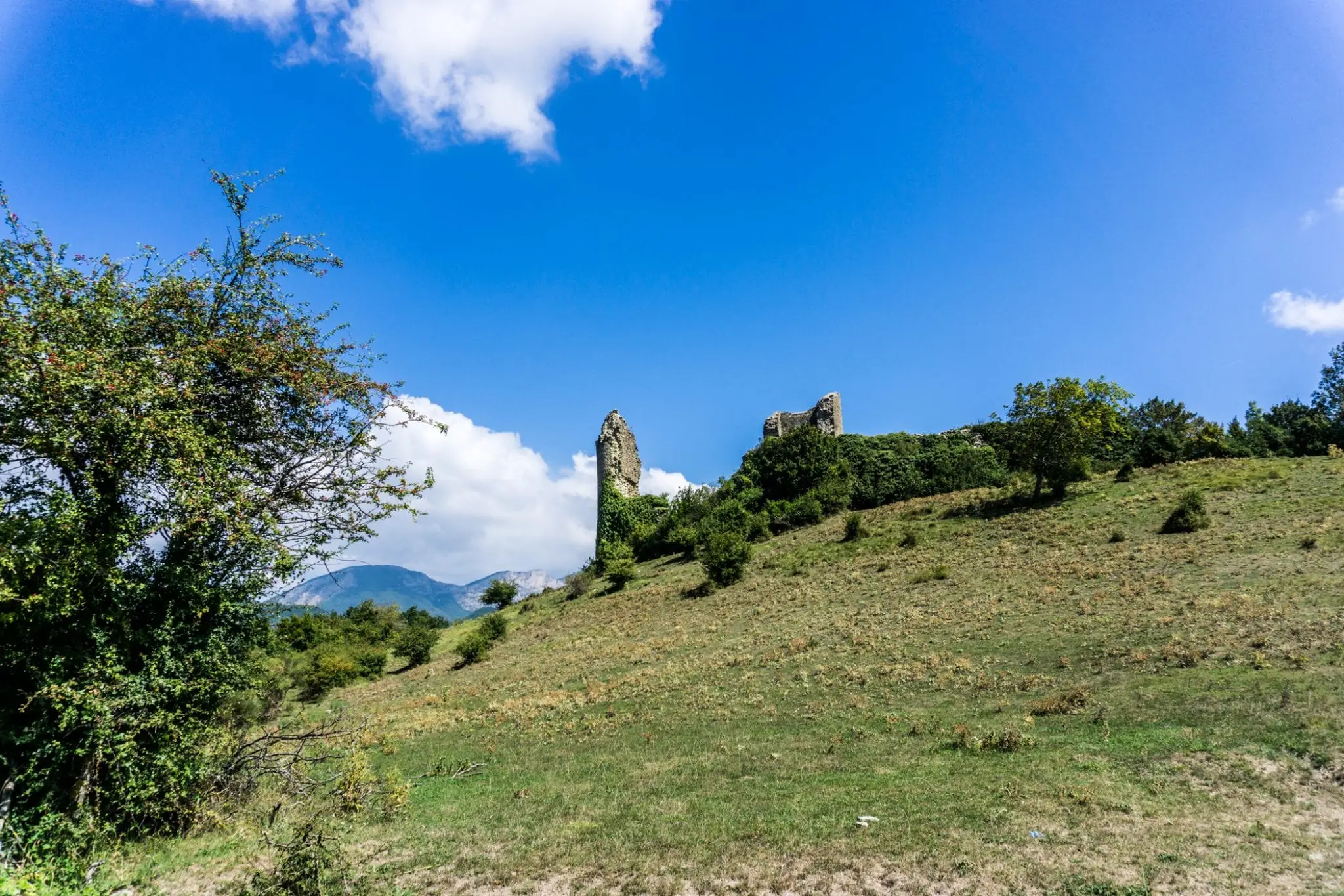 Terug in Dieulefit kun je ook etappe 2 volgen. Die loopt via het dorpje Comps en eindigt in Bourdeaux. Onderweg loop je door bossen, over heuvels, door heide en langs weilanden. De route staat aangegeven met het logo van de Huguenots, maar vaak is het makkelijker om de rood-witte strepen te volgen. Het is namelijk ook een GR-route; GR 965. Je moet alleen halverwege goed opletten. Daar kruis je namelijk GR 9, die ook is aangeduid met rood-witte strepen. Volg je GR 9 dan kom je wel uit op dezelfde eindbestemming, maar mis je de historie van de Huguenots en het Château Saint-André. Het chateau is een mooi voorbeeld van de imposante huizen die de Huguenot-heren in goede tijden bezaten. Het verhaal gaat zelfs dat een van de eigenaren van dit chateau in de 16e eeuw Calvijn himself mocht ontvangen op dit landgoed.